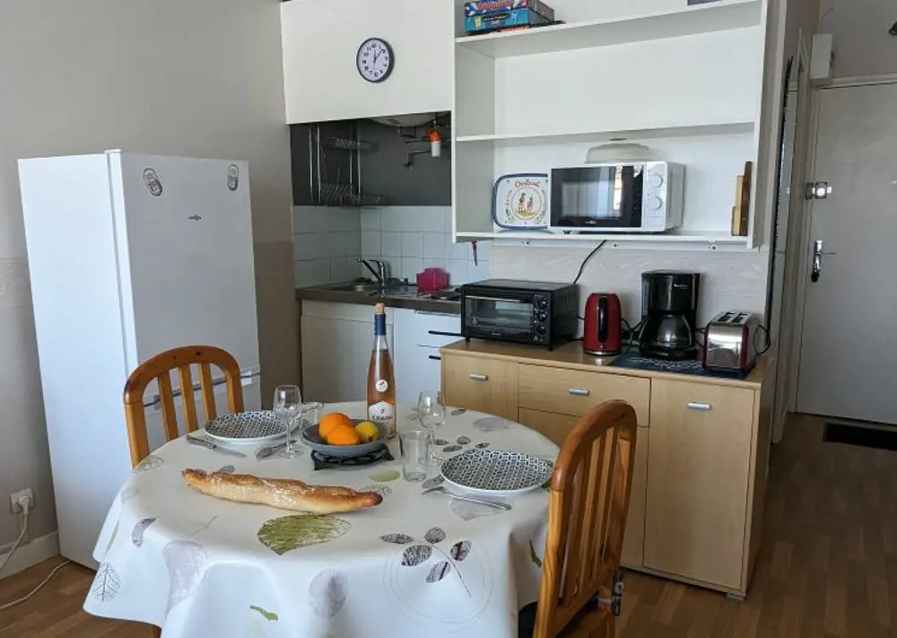 . Kitchenette équipée : plaque 2 feux, four micro-ondes, mini-four, bouilloire, grille-pain