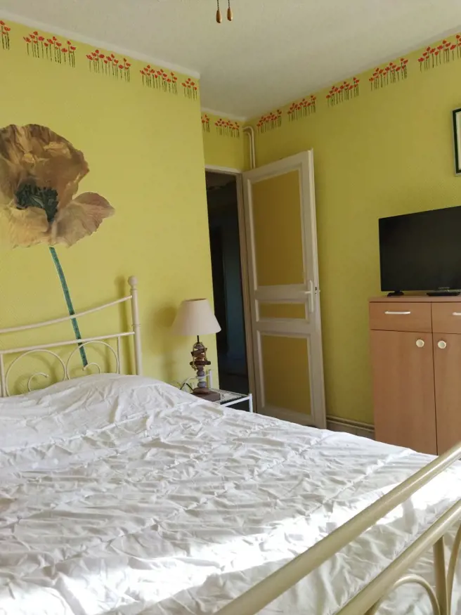 Chambre 2 (10 m²) : lit 140, rangement, TV